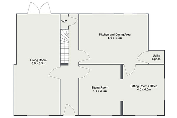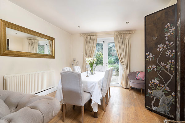 The entrance hall leads to a succession of large and well-proportioned reception rooms that lend themselves to a variety of uses. These include a large, light-filled sitting room overlooking the front garden that’s ideal for entertaining, an inviting dining room looking on to the back garden, a relaxing sitting room with original timber ceiling beams and an elegant, dual-aspect home office that would not look out of place in the glossiest of style magazines.