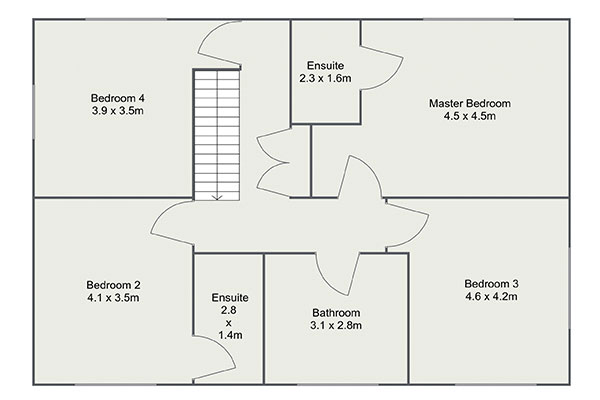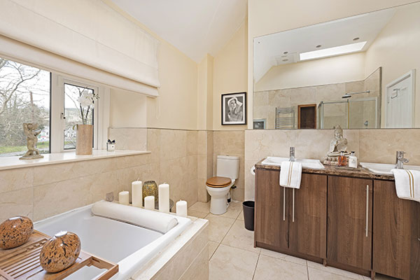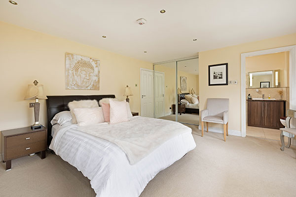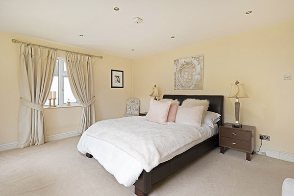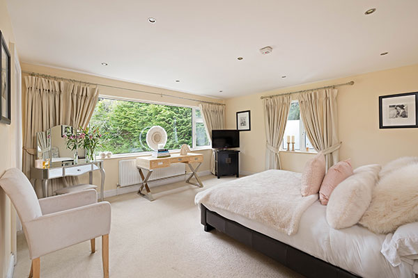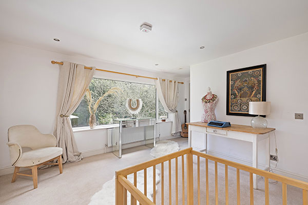 Upstairs, a spacious landing and adjoining corridor lead to four exceptionally large bedrooms, two of them ensuite, and the main bathroom with Jacuzzi bath and separate walk-in shower. All three upstairs bathrooms feature larger than average walk-in showers with rainforest showerhead, and contemporary fixtures and sanitary ware.