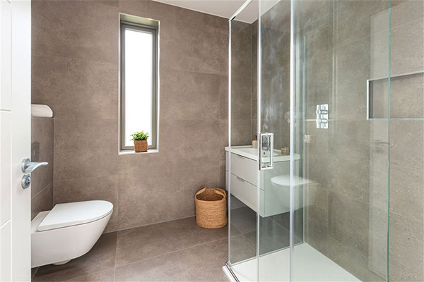 • Large walk-in shower in master ensuites with slimline slate shower tray, pressurised shower system with large rainhead shower fittings and slimline wet room panel