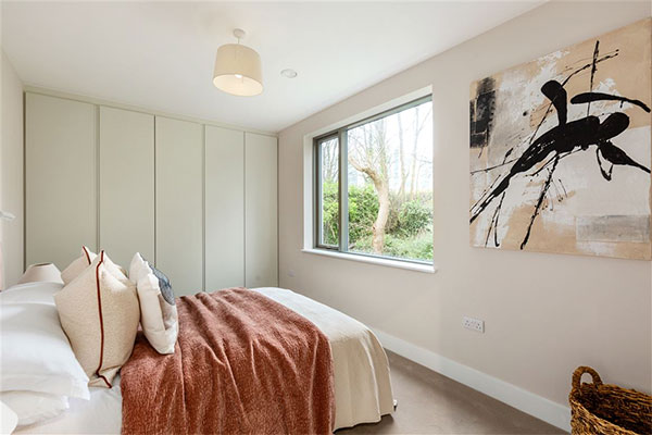 • Modern high quality flat panelled built-in wardrobes in all bedrooms with oak finish and combination of hanging and shelved space